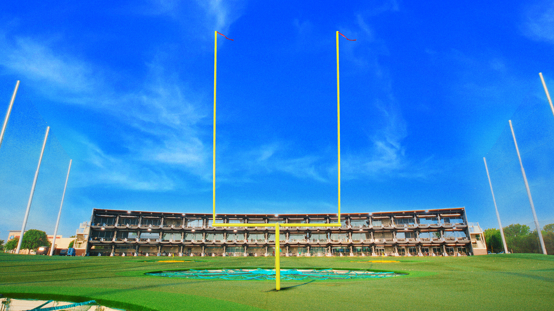 Huddle up for the Topgolf Field Goal Challenge – a brand-new Topgolf game that tests your swing, your aim and your bragging rights. The goal? Split the uprights by hitting your ball through digital goal posts during two play modes: Free Play and The Challenge. Choose your yardage with five different distances in Free Play or fire up The Challenge for the ultimate competition, where each Player has 10 shots to get five balls through the digital goal posts at varied distances.